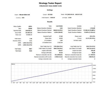 Because Bitcoin is notoriously volatile, a grid-based EA like Bitcoin Robot Grid V6.0 does not guarantee profits — results depend heavily on market conditions, risk settings (lot size, drawdown limits), and proper management. The grid strategy can lead to accumulating many positions, which may amplify risk if the market trends strongly in one direction. It’s best used with risk-conscious settings, sufficient account balance, and ideally on a stable low-spread broker with VPS hosting for 24/7 uptime.