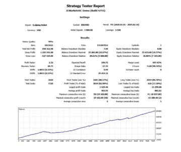 This fully automated Expert Advisor for MetaTrader 4 is optimized for scalping on the M1 timeframe, capturing small price moves with high frequency. It works with all MT4 brokers and does not require DLL files.